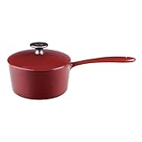 Mario Batali's cast iron cookware is great and gives Le Crueset a run for their money. I actually like his better because the insides are lined with the beige enamel like the orginal Le Cruesets were (and I liked them better that their current black interiors). I like the longer handles and his design is superior, in my opinion. But... the handles on the covers! Mario, what were you thinking?! (I know what he was thinking, "Wow, those steel covers really look cool with my initial 'M' on them...")But they are better conductors of heat that the pans!!! When you try to remove the lid as you would normally do with any other pan, picture the German villian in "Raiders of The Lost Arc" when he's grabbing the medallian that just came out of the fireplace. Mario, I love you. You are a God when it comes to Chef-dom and even a pretty good designer, but I wish you would have the handles on your pots and pans made from Bakelight so we don't maim ourselves using them. *Otherwise*, I love all of his stuff :-)Click Here to see more reviews about: Mario Batali 2-Quart Sauce Pan, Chianti
